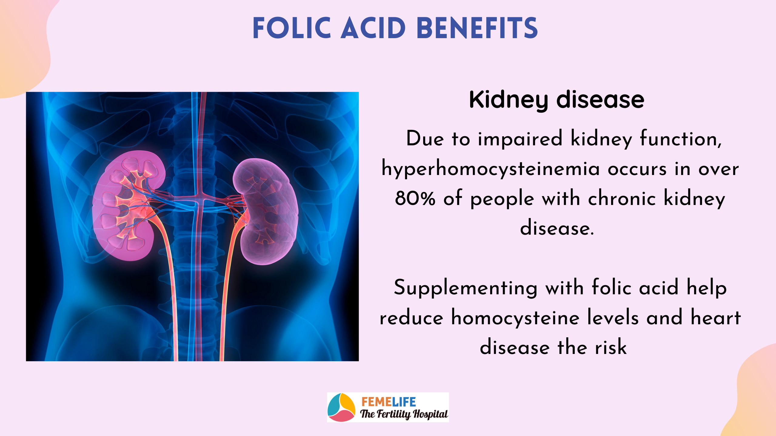 Chronic renal disease patients have a higher cardiovascular risk than the general population, which has been linked to elevated homocysteine levels. Folic acid supplementation can lower homocysteine levels, lowering the risk of cardiovascular events.