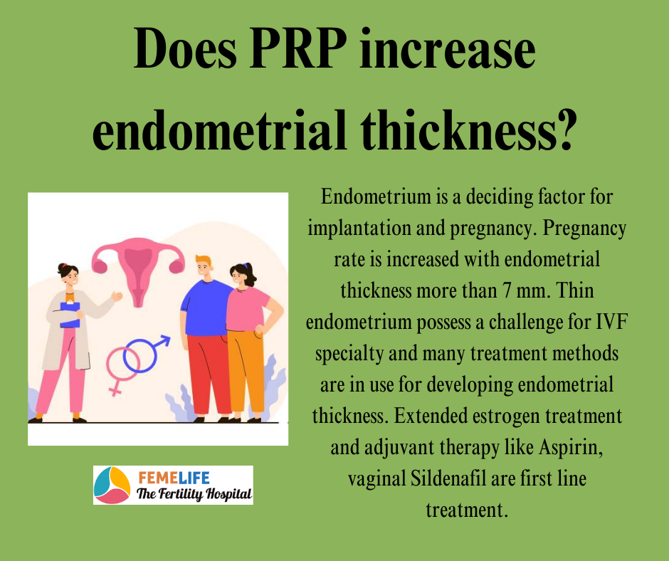 Recently PRP has been tried at many IVF centers and shown promising result. At Femelife we tried it on 15 women who never achieved the endometrium thickness beyond 6mm. 70% women had good result of endometrial thickness 8mm or more. Four of them had a successful pregnancy up to term.