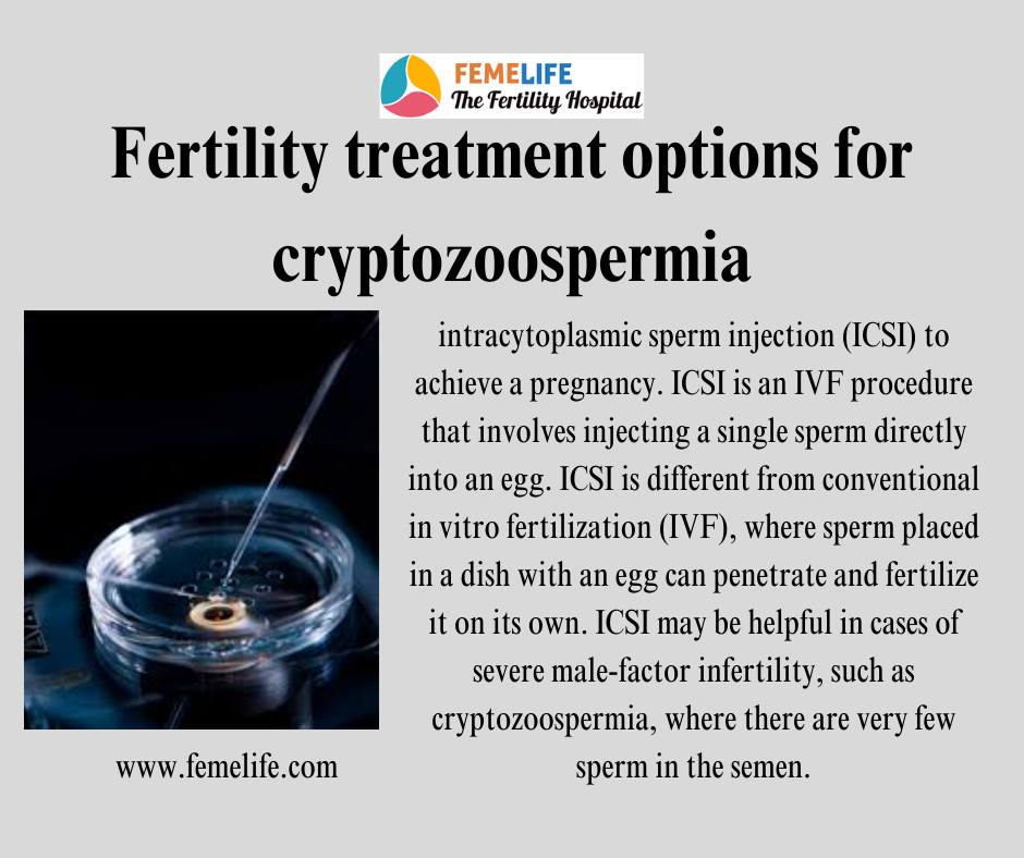 Contrary to traditional in vitro fertilisation (IVF), which involves placing an egg in a dish with sperm, ICSI allows the egg to fertilize itself. In severe cases of male-factor infertility, including cryptozoospermia, where there are very few sperm in the semen, ICSI may be beneficial.