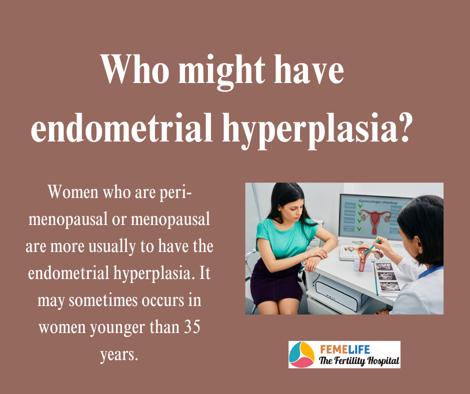 Women who are peri-menopausal or menopausal are more usually to have the endometrial hyperplasia. It may sometimes occurs in women younger than 35 years. Other risk factors include: